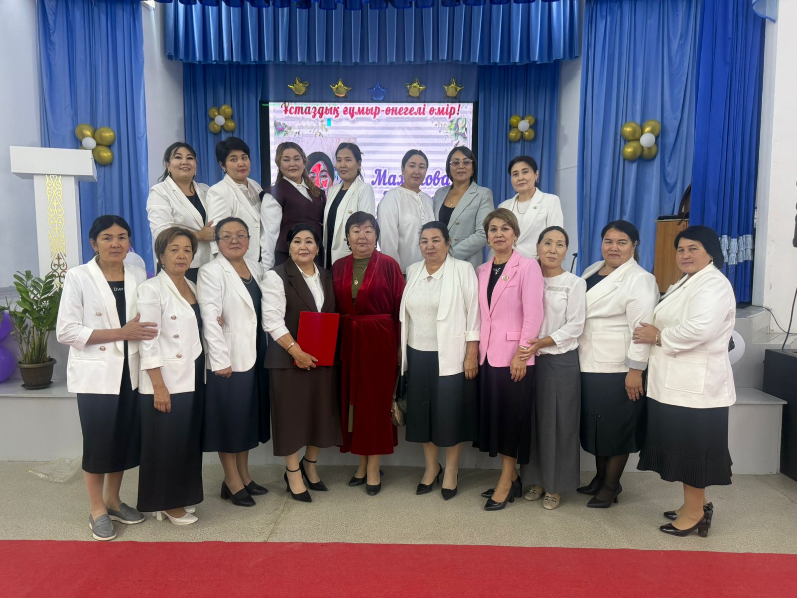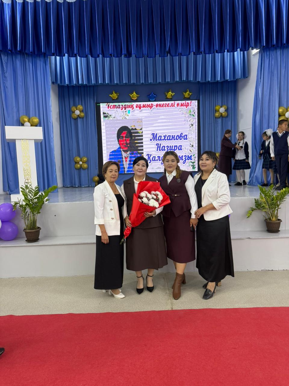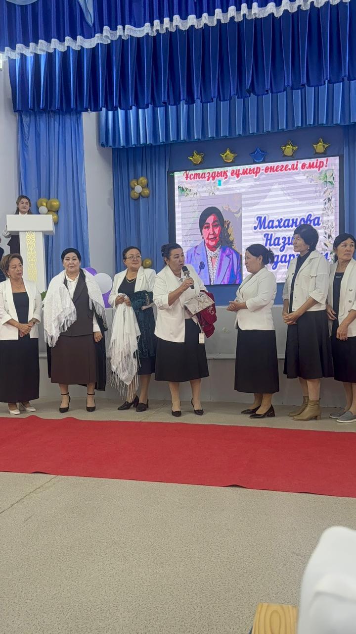 Мектебіміздің ұлағатты ұстазы, шәкірттерге білім мен тәрбие беруде ұзақ жыл еңбек еткен бастауыш пәнінің мұғалімі Маханова Назира Қалдарқызын "Үстаздық ғұмыр-өнегелі өмір!" тақырыбында зейнеткерлікке шығарып салу кеші өткізілді. Ұстазға арналған мерекелік кешке мектеп-лицей директоры, ардагер-ұстаздар, ағайын-туыстары және ұжымдастары қатысты.